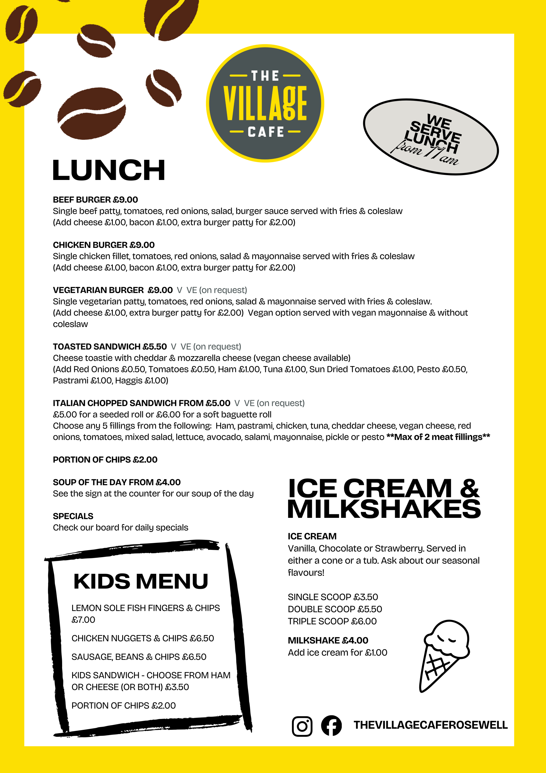 Follow The Village Café socials for daily specials and new additions to the menu.